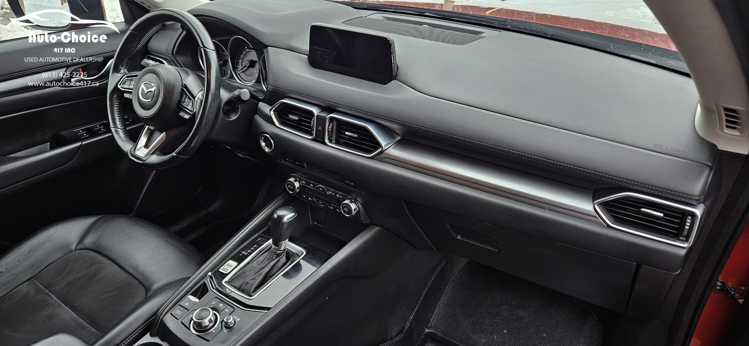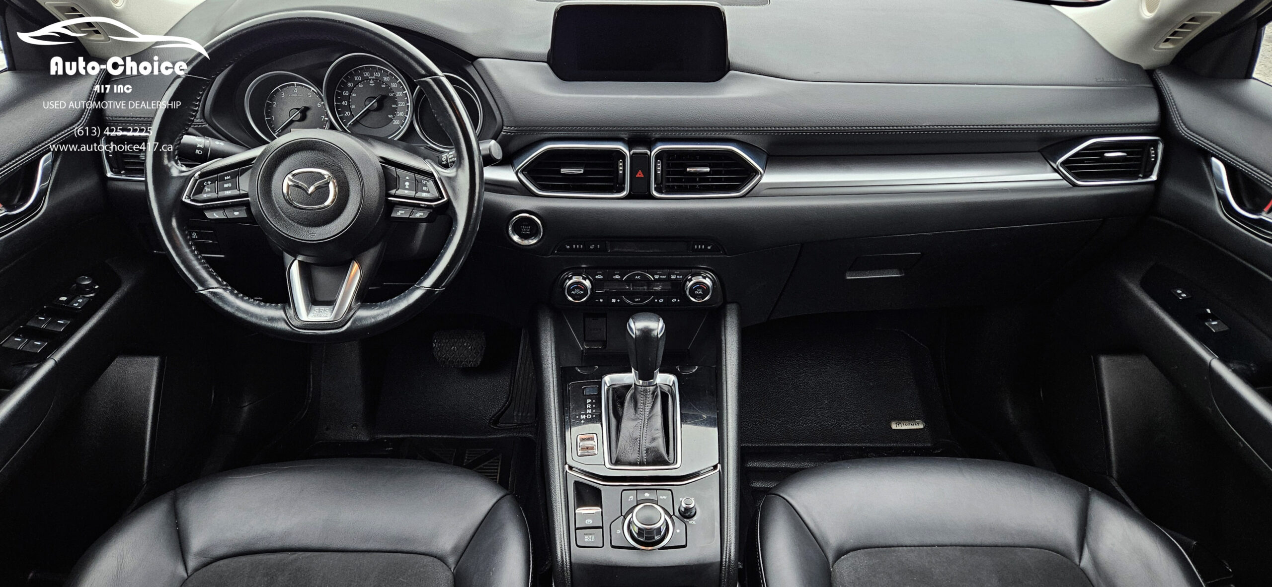2018 Mazda CX-5 GS Touring, 4 cylinder 2.5L engine with automatic transmission and all wheel drive. Push start button, Air conditioning, black heated power leather seats, heated steering wheel, power locks, power mirrors, power windows, Dual front airbags, Side airbags, Adaptive cruise control, lane keeping assist, Blind spot assist, Bluetooth connectivity, backup camera, remote starter, sunroof and alloy rims.